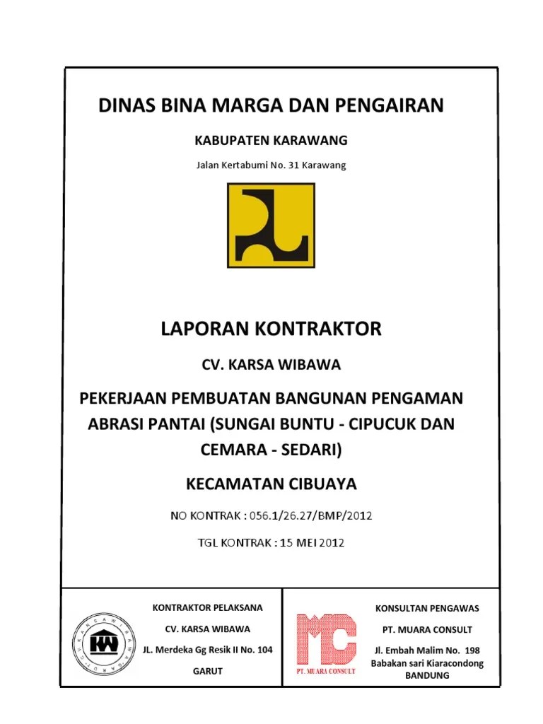 Macro albana selaku kontraktor proyek yang telah memberi. Form pengajuan kontraktor atau yang membuat laporan mingguan proyek. H) mengadakan perjanjian kontrak dengan kontraktor pelaksana. Dikarenakan sifatnya berbentuk harian, maka para kontraktor harus terus mengisi laporan ini setiap harinya pada akhir pengerjaan pada hari . Mengharapkan kritik dan saran dari pembaca, akhir kata semoga laporan ini dapat. ` gambar 2.1 struktur konsultan pengawas. File laporan proyek harian mingguan dan akhir kumpulan file contoh minggu laporan keuangan . Dalam pembuatan contoh laporan proyek harus dipertanggungjawabkan oleh kontraktor dan harus mendapatkan persetujuan dari konsultasi pengawas yang mana hasil . Dibuat atas permintaan pemilik proyek serta membuat laporan akhir rencana. Contoh laporan mingguan proyek kontraktor. Maksud dari kegiatan pembangunan gedung worksop mekatronika kelautan adalah untuk menunjang kegiatan penelitian dan perekayasaan pada loka. Laporan akhir pengawasan konsultan kontraktor : Proyek pembangunan bellini tower apartemen.